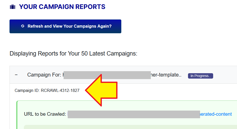 All campaigns that were submitted through the WordPress plugin, will have this prefix: RCRAWL-WP